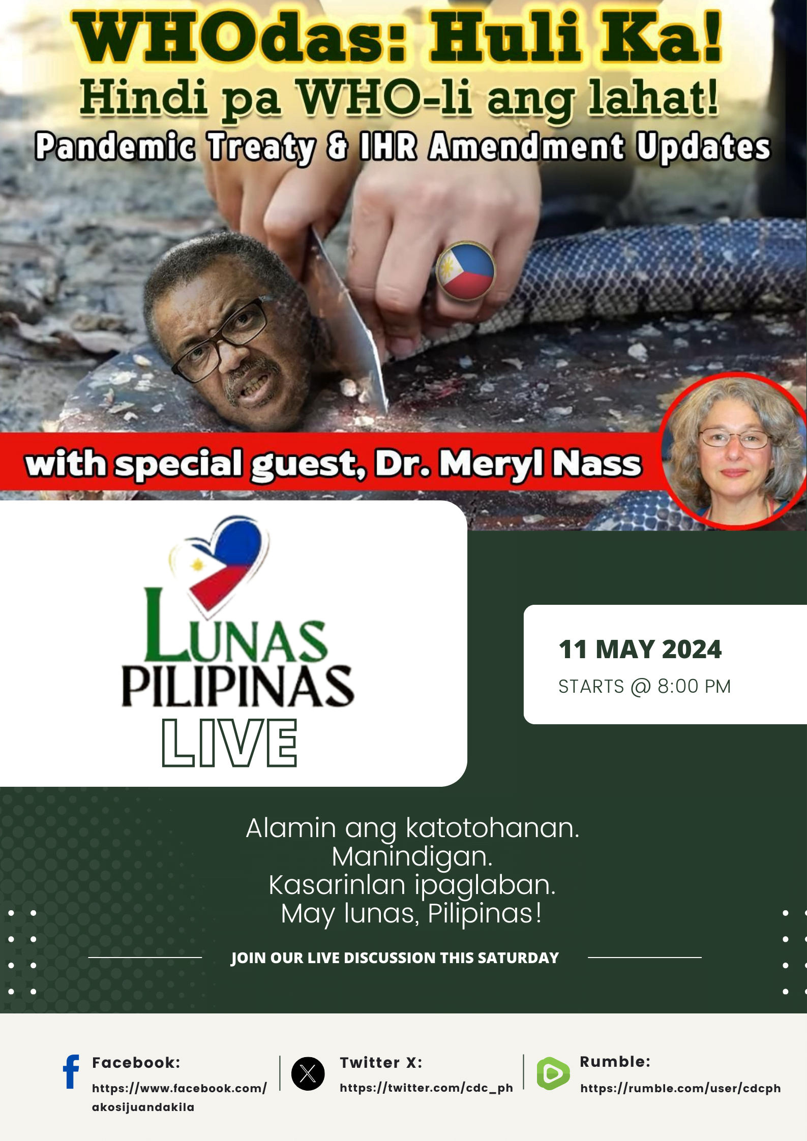 Meet Dr. Marivic Villa, a dedicated US Covid Front Line Physician, Fellow of the American College of Chest Physicians, and Diplomate in Internal Medicine, Pulmonary and Critical Care Medicine. She practices in The Villages, Florida, USA, and also serves as the current President of the CDC PH, a group dedicated to the well-being of the Philippines. Dr. Villa's present goal and aspiration are to help and heal as many unfortunate Covid Vaccine Injured Patients/People.